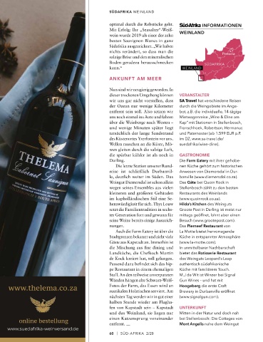 des Küstenortes Yzerfontein vor uns. im DZ, www.sa-travel.de/ www.cloof.co.za Thelema Mountain Vineyards,
