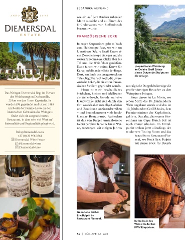 Das Weingut Diemersdal liegt im Herzen Städtchen, kleiner und idyllischer Weingütern bringen. Trotz der Eleganz ist die Atmo- an die erste dunkelhäutige Frau in